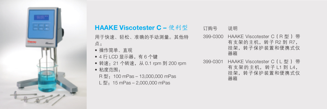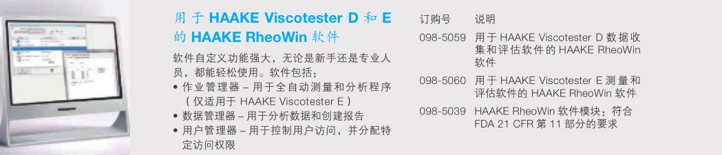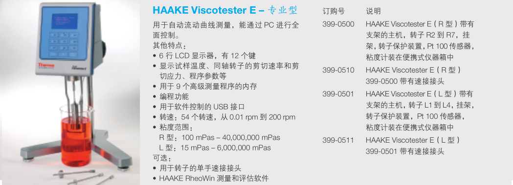 HAAKE Viscotester C, D 和 E 主要功能: