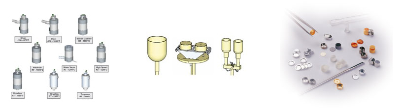 STA 449 F3 提供多種不同材質的坩堝,如氧化鋁,白金,鋁,石墨,石英等。對于每種坩堝均提供多種不同的尺寸規格。